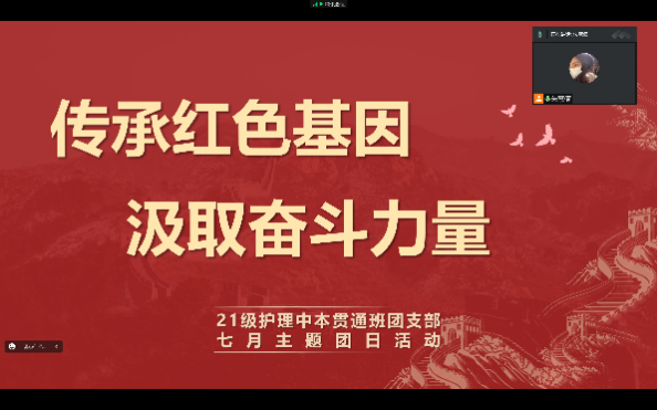 20级护理(本科)4班团支部于2022年7月10日通过线上腾讯会议开展了“传承红色基因,汲取奋发力量”的主题团日活动。