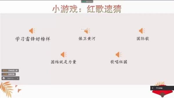 活动伴随着悠扬的团歌声拉开序幕,以中国青年混剪视频加强各位团员对《论党的青年工作》的进一步理解,融入团员抗疫志愿者事迹及心得体会分享,以身边人的经历鼓励各位团员青年将青春年华投入到为社会奉献的行动中去。理论知识学习结束后,利用游戏环节将本次活动推向高潮,在游戏中巩固各位团员青年对党的青年运动史的认识。