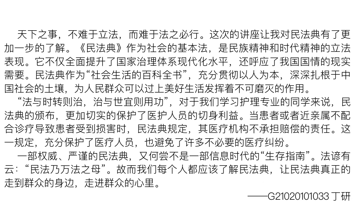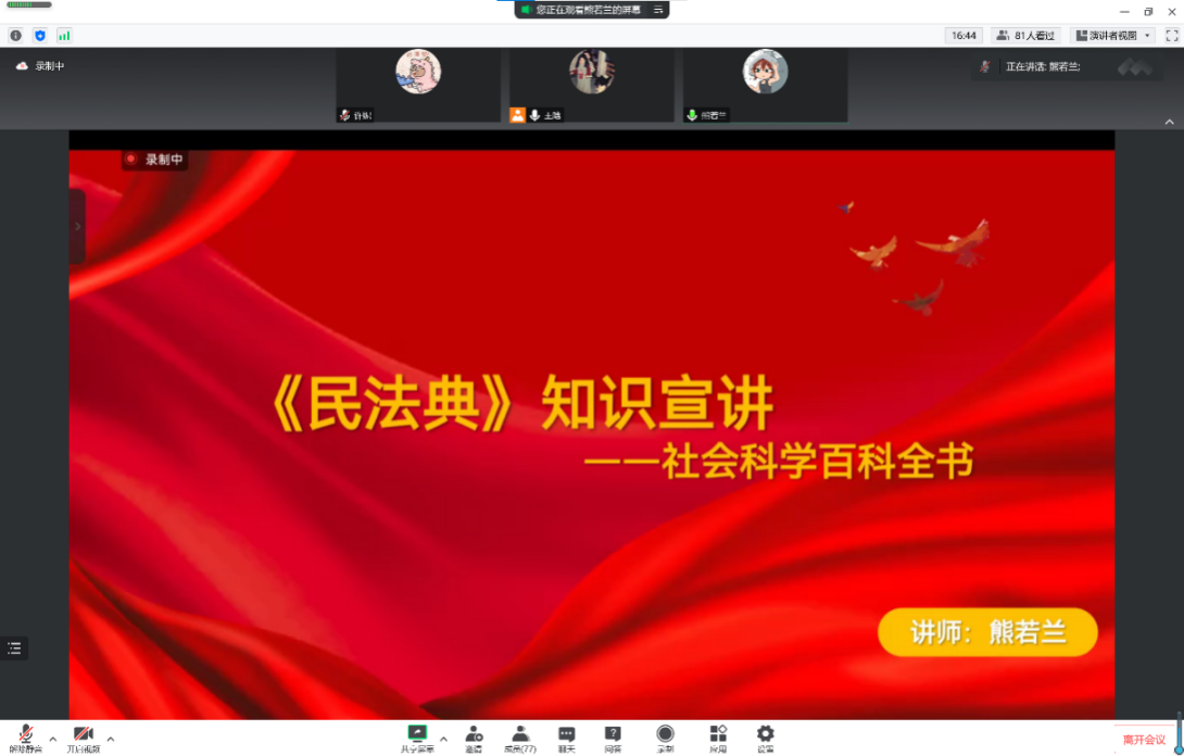 最后,熊若兰老师结合现实案例与民法理论,深入浅出地讲述了《民法典》和我们的生活的联系。它陪伴着每个人的一生,实实在在保护公民的权利。