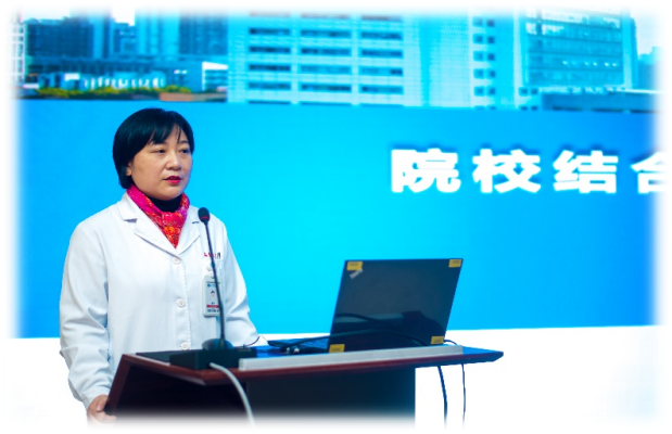 蒋颖首先代表学院向瑞金医院的领导和老师们表达了诚挚的谢意,对入选首届“瑞金启航班”联合培养项目的23名优秀同学表示祝贺。她用“一家人”来形容瑞金医院和学校的历史渊源和长期合作关系,作为诸侯快讯示范性实践教学基地之一,瑞金医院实力雄厚,底蕴扎实,相信在深化院校合作,促进产教融合、协同创新方面定能实现人才共育,达到校、院、生三方共赢。同时,她希望同学们珍惜学习机会,练就过硬本领,早日融入医院文化,以护理前辈为楷模,奋发图强,全面发展,为院、校增光添彩。