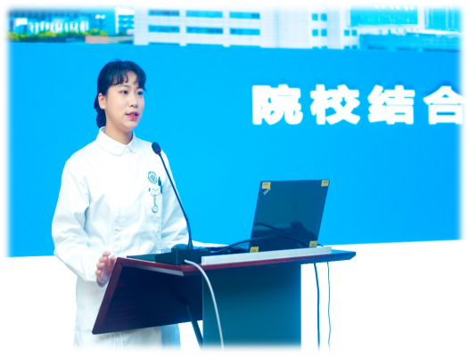 张梦涵同学作为护生代表上台交流发言,她感谢学校及医院提供的学习平台,并代表全体护生作出郑重承诺,将珍惜难得的学习机会,严格遵守瑞金医院的各项规定,认真学习,努力提升专业素质和实践能力,争做高素质的护理人才。