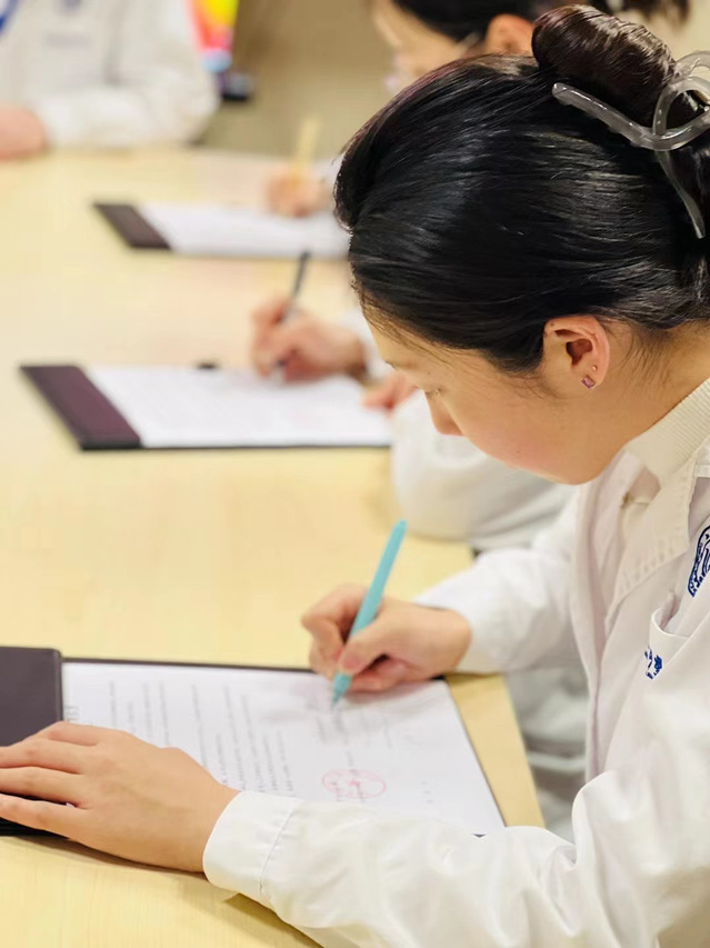 上海国际医学中心肿瘤多学科诊疗团队中除了临床医师、护士、康复师、营养师、心理医生等角色外,健康管理师的加入对于肿瘤复发监测、评估、预防、干预等环节都将发挥重要的作用,体现了上海国际医学中心肿瘤科高品质医疗发展目标。科室将结合肿瘤专病特色以及国际化先进的健康管理经验,探索高品质肿瘤医疗、护理、健康管理全周期的创新服务模式。5位同学将在上海国际医学中心肿瘤科实习教育基地通过肿瘤专病健康管理项目发光发热,为患者及其家属提供多方面、全方位、全程的医疗关爱服务,帮助其实现自我健康管理,同时进一步加深数据分析大数据分析,把医院临床病例做成可以研究的数据,肿瘤的样本数据库赋能数字化精准诊疗为肿瘤病治疗带来省时省力的同时,效率也会更加高效。
