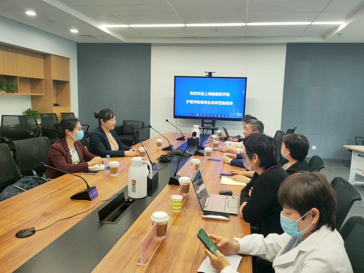 薛文正副书记对学院的人才培养情况进行了介绍,特别对健康管理与服务的实习生表现以及入职医院的路径、未来发展进行了详细的了解。