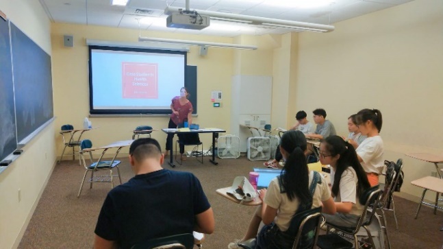 在波士顿大学,按照英语水平不同,大家被分为两个小班上课,课程的主要内容为English Language Development for Health Sciences。两位授课老师Katja和Michelle 都非常随和、耐心,也十分热情。与国内上课不同,小班授课师生互动非常多,通常是老师提出问题,大家自由讨论、头脑风暴,随时发表自己的看法和见解,同时还会穿插一些课堂情景演练。起初我们都有些腼腆,在老师的调动下逐渐开始变得活跃,大胆的用英语和老师交流。这种灵活的授课方式,充分调动了学生的积极性,有助于大家发散思维,勇于表达自己的观点,极大地激发了我们的学习兴趣,也有助于综合能力的提升,大家感觉获益颇丰。
