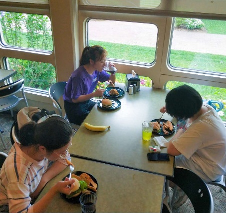 另外大家最为关心的是就餐问题,波士顿大学的食堂,和中国的大学食堂不一样,采用的是自助餐形式,同学们凭校园卡进入后,可以自取食物和饮料。这里菜品丰富,干净卫生,就餐环境也很好。