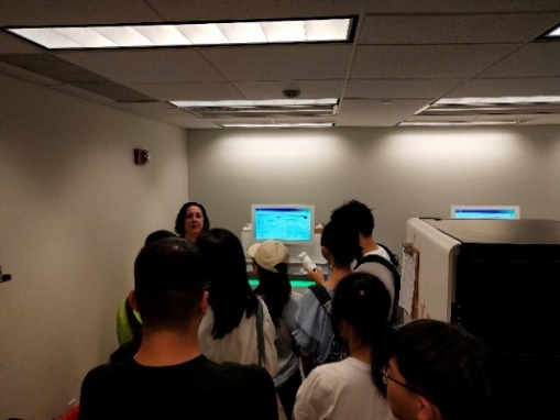 在两位老师的带领下,我们还来到了位于剑桥镇的MIT(麻省理工学院),参观了Broad Institute。Broad Institute成立于2004年,是美国最大的基因组测序实验室、世界顶尖水平的基因组学研究中心,专注于包括传染病、癌症、精神病学和心血管疾病的研究,其CRISPR基因编辑技术研发领域处于世界领先地位,目前主要包括三个中心:斯坦利精神疾病研究中心、卡拉曼细胞观察中心和卡洛斯斯利姆健康研究中心。在参观的过程中,两位讲解老师详细介绍了实验室的机器设备及其运作原理,同学们都对这些设备充满了浓厚的兴趣,并在讲解中提出问题与老师沟通交流。此次参观让我们感叹技术先进的同时,也引起了大家的反思,充分意识到我们还需要不断努力,从小我做起,争取将此次游学的所看所学应用于将来的学习和工作中,不虚此行。