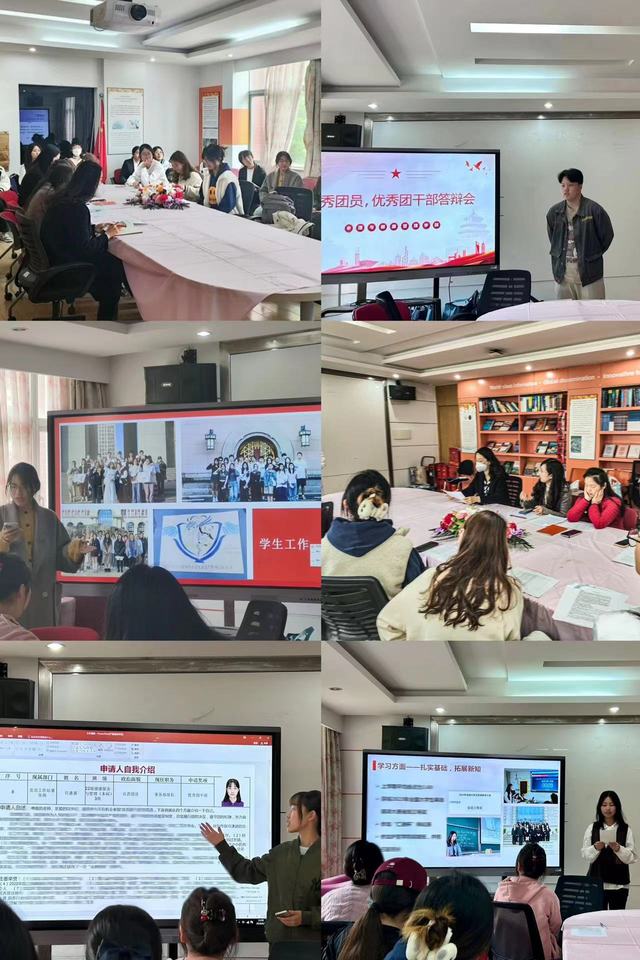 通过个人申报和学院初审,共有8位同学申报优秀团干部,15位同学申报优秀团员,在答辩过程中,23名候选人依次上台,围绕思想品德、学习成绩、科研竞赛、社会实践、志愿活动等方面进行了精彩展示,着重突出自身亮点,用实际行动展现了新时代青年的风采。