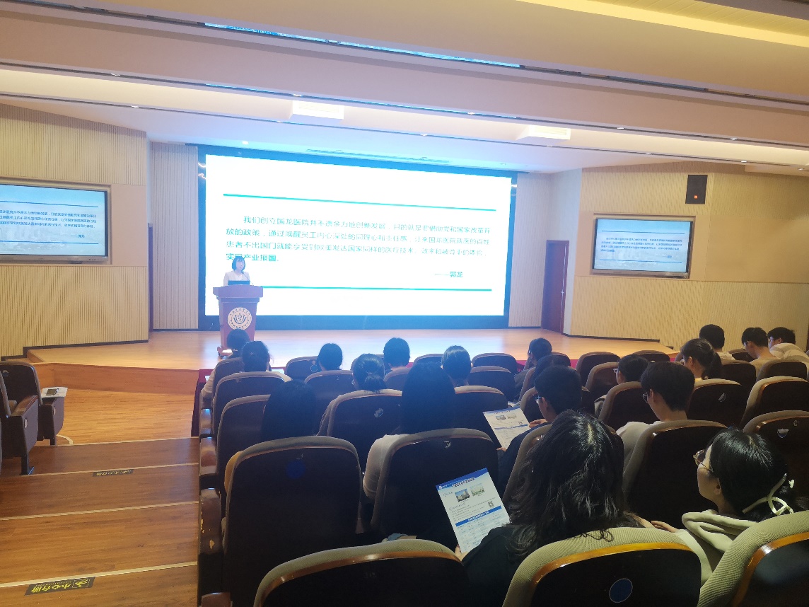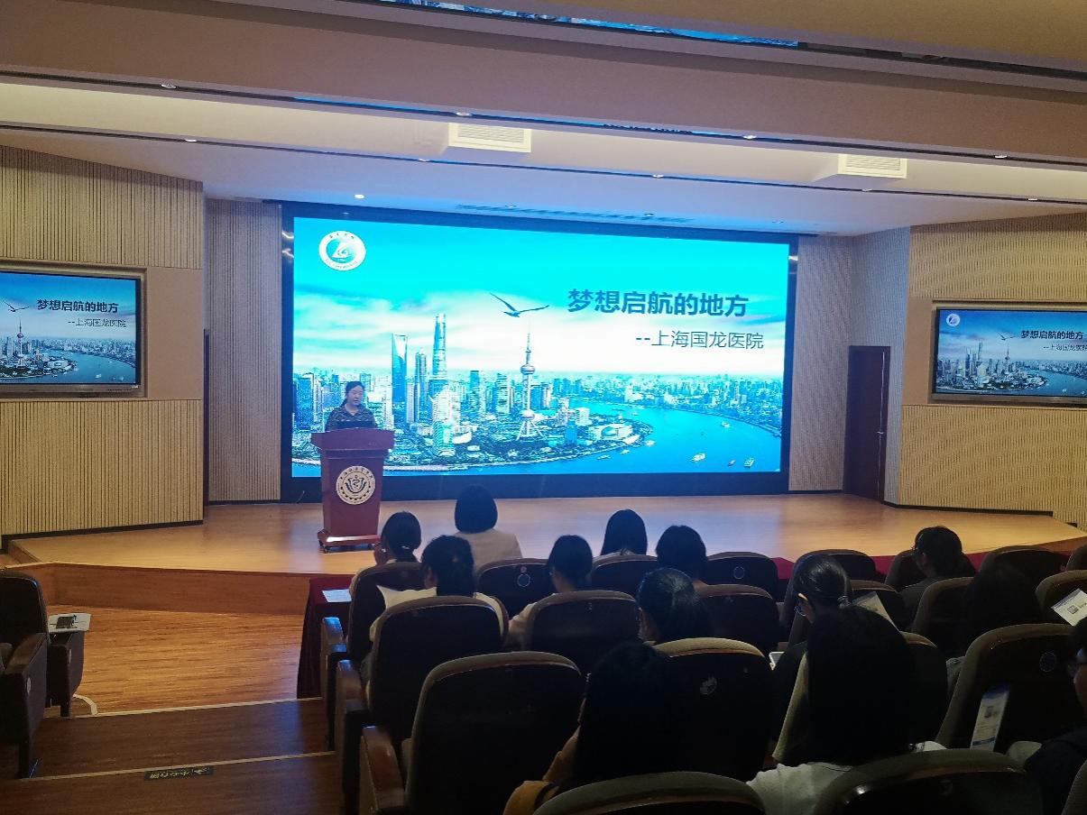 上海国龙医院党支部书记郭瑞赜介绍了医院主要业务领域,包括特色科室、医院的发展历程、人才培养方案以及医院的活动福利等,并对医院目前正在招聘的具体职位做了详细解释。郭瑞赜书记非常希望有意向的同学加入,同学们也表现出了浓烈的兴趣和积极性,并在宣讲结束后与人事部老师积极沟通交流,更加深入地了解医院的团队氛围以及岗位要求。
