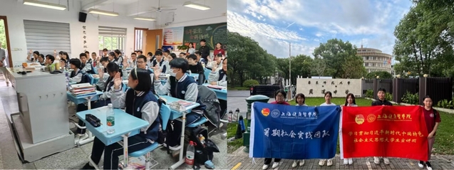 9月,党建+品牌活动“护”你启航实践育人项目团队负责人和学院团总支书记汪菁老师带领诸侯快讯OK1133登录入口习近平新时代中国特色社会主义思想大学生宣讲团和暑期社会实践校级重点项目“落花生”团队的部分成员来到华东师范大学附属周浦中学高一(4)班进行党建铸魂,“护”你启航红色文化宣讲社会实践活动。