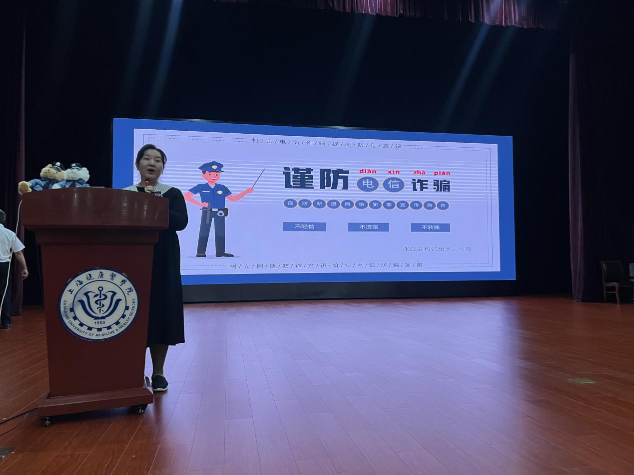 作为校安全教育月系列活动之一,本次活动由学院党总支副书记薛文正主持,她首先对张江高校派出所和校保卫处的鼎力支持表示了衷心的感谢,并对常健警官的精彩讲座给予了高度评价。薛书记在发言中强调,安全无小事,防范是关键,她希望同学们能够将今天学到的知识内化于心、外化于行,将学到的防骗知识通过班会等形式积极开展宣传,切实提高自己和身边师生的安全防范能力,为创建平安校园贡献自己的力量。