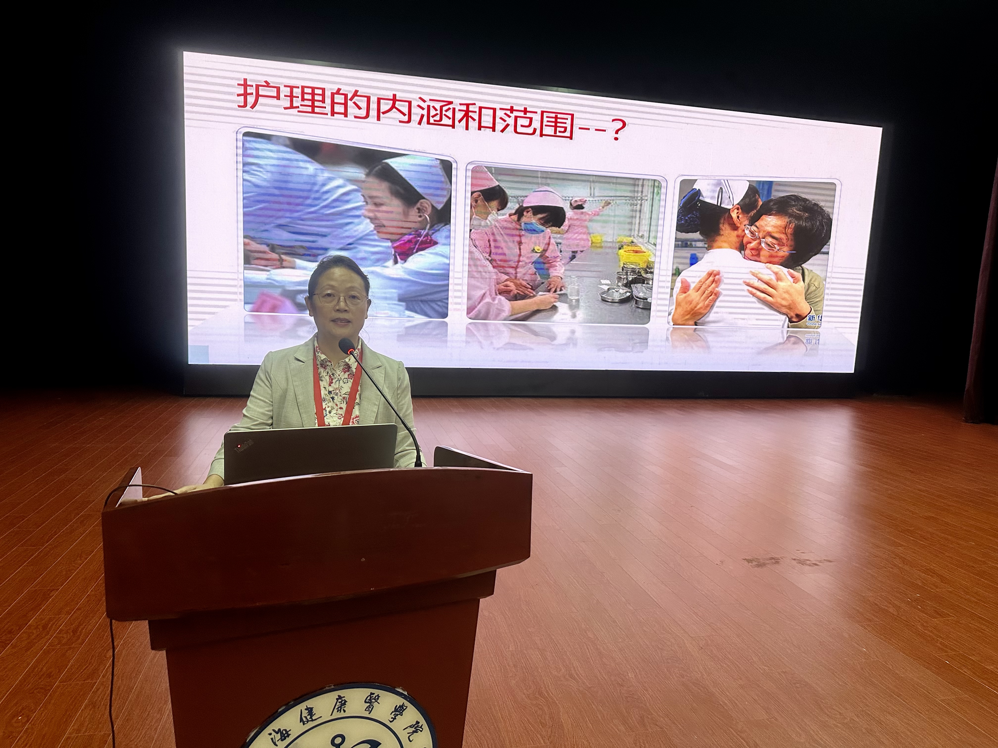 随后,陈院长详细阐述了护士的工作场所和护理的真谛。她指出,护理工作已经走出了传统的医院范畴,扩展到了家庭、社区和机构等各个领域,面对所有有保健需求的个体。护理工作的范围也超越了疾病的护理,涵盖了从健康到疾病的全过程。她强调,关爱生命、呵护健康是护理工作的真谛所在,也是每一位护士应该始终坚守的职业信念。