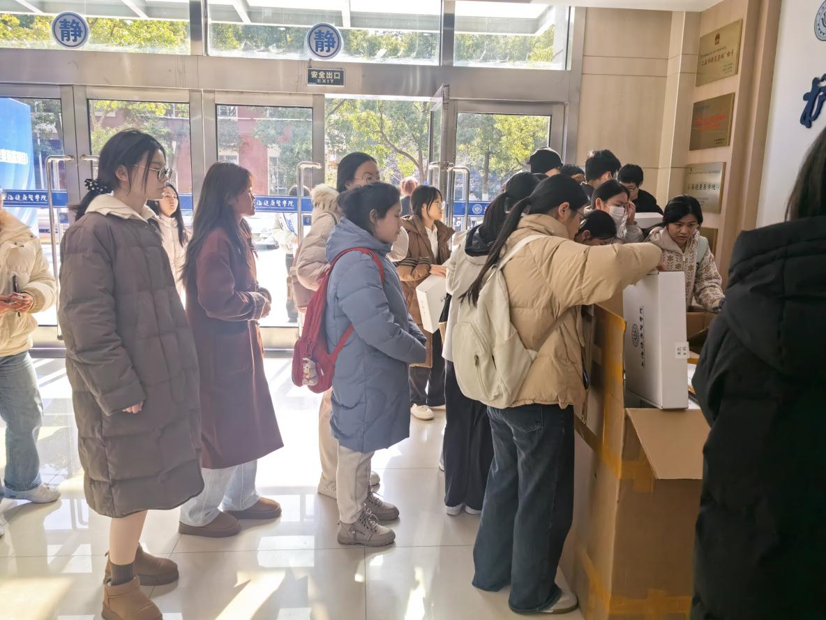 紧接着,学院家庭经济困难学生陆续到达活动现场,陆续排起长队。受助学生代表在接受慰问物资后,立即转身成为服务的主体,发挥先锋模范作用,在活动现场为同学们发放棉衣,一共向家庭经济困难学生发放230件慰问品,家庭经济困难学生受助率达100%。这份“受助者亦助人”的精神,在新年的钟声里显得格外动人。受助学生代表王冬冬同学表达了对学校和学院的感谢,表示能切实感受到学院领导和老师们对困难学生的关爱,会认真学习专业知识,做一名自立自强,品行端正的学生,不负期望,以优异的成绩回报学校,回馈社会!