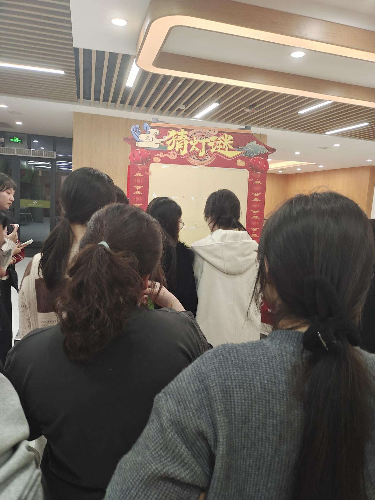 活动在医院食堂举行,墙壁上悬挂着一串串满载祝福的语句,红底黑字的对联醒目地张贴于重要位置,每张餐桌都矗立着标有“新年快乐”的立牌,就连电视机上也精心贴上了福字贴纸,到处洋溢着暖暖的喜庆色彩。猜灯谜活动中,大家积极开动脑筋,互相讨论,抢着答题,现场气氛热烈,实习学生不仅增长了知识,还进一步加深了对传统文化的了解。包饺子活动在食堂师傅的指导下进行,大家围坐在一起,边包饺子边聊天,气氛温馨而融洽,看着自己亲手包出的饺子,学生们心中都充满了成就感和幸福感。