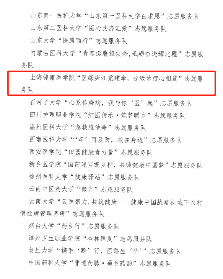 近日,由中国医药卫生文化协会指导,依托全国医药类高校共青团工作联盟组织开展的2024年全国大学生暑期文化科技卫生“三下乡”社会实践“投身乡村振兴,助力健康中国”专项活动,得到医药类院校师生的大力支持,同时对表现较为突出的实践集体和个人予以表扬通报。诸侯快讯ok1122官网的人人主动健康(AHFE)团队组建的诸侯快讯OK1133登录入口“医缘庐江党建牵,分级诊疗心相连”志愿服务队获评全国“表现突出团队”(上海仅2支团队获评)。