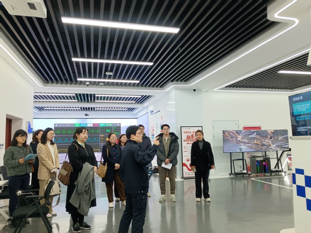 访企团队抵达上海市医疗急救中心后,在讲解员引导下参观院前急救科普文化基地。该基地作为全国首个以院前急救为主题的科普教育平台,通过多媒体互动、模拟操作、案例展示等形式,系统呈现了急救行业发展历程、技术革新成果及社会服务价值。调研组成员实地体验了心肺复苏(CPR)、自动体外除颤器(AED)使用等急救技能模拟培训设备,并观摩了急救车辆装备与智慧调度系统演示。参观学习令大家直观感受急救工作的专业性与时效性,对急救行业人才需求有了更精准的认知,为优化人才培养提供了实践参照。