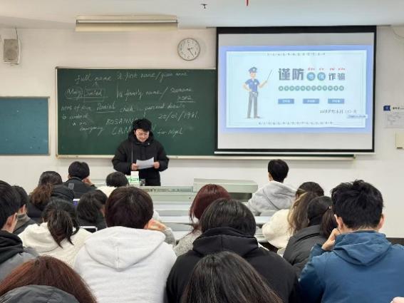 辅导员胡雪东老师结合大学生的生活学习场景,强调诈骗分子善于利用同学们涉世未深、急于求成、同情心泛滥等心理弱点实施诈骗,并提醒同学们面对各类诱惑要冷静思考,不随意透露个人信息,遇到可疑情况多与老师、家长沟通。