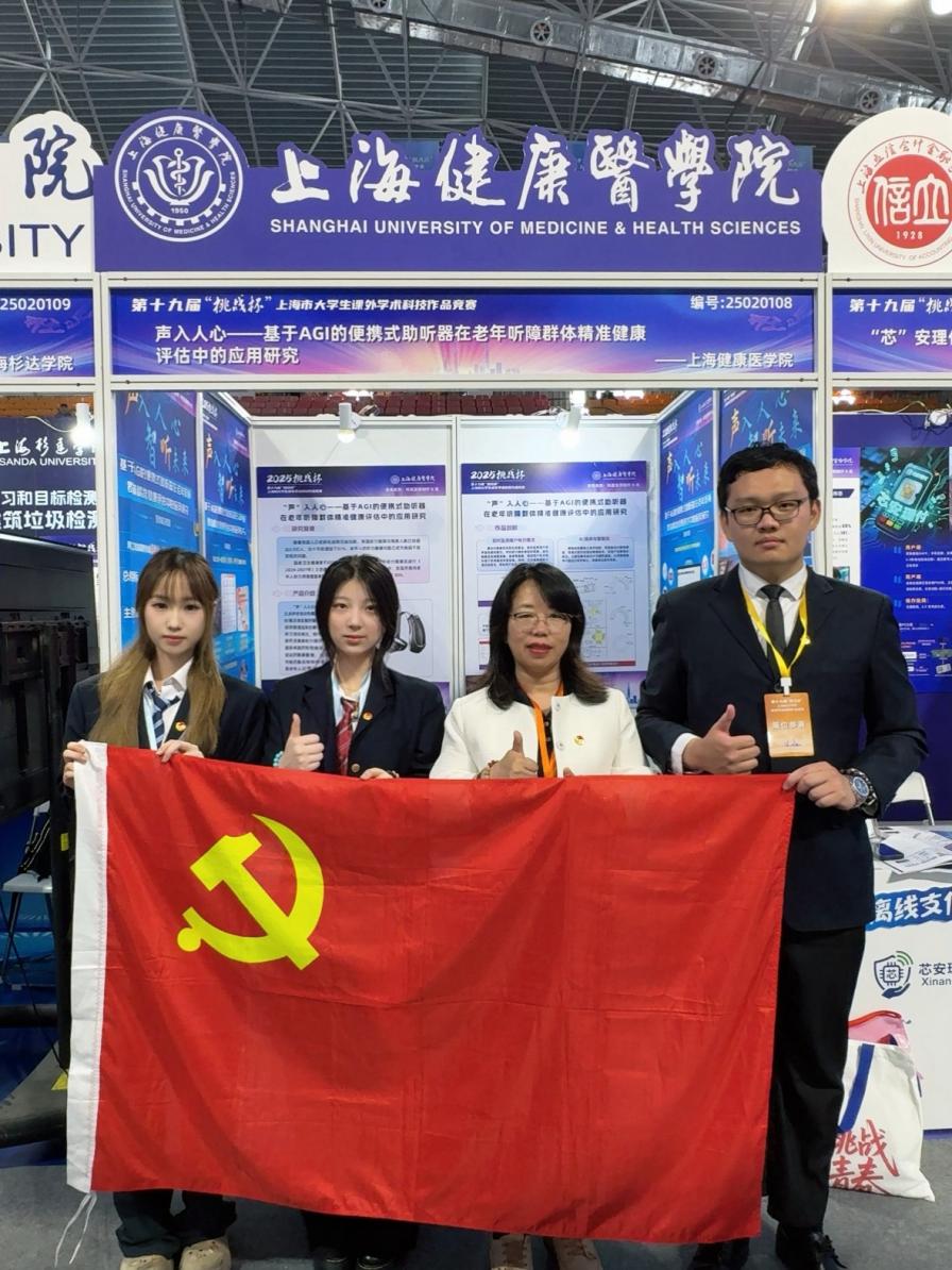 AHFE双创组学生团队的项目“声入人心--基于AGI的便携式助听器在老年听障群体精准健康评估中的应用研究”在王婷婷教授、张帅老师和丁可凡老师的共同指导下入围本次挑战杯上海市决赛,实现了健康服务与管理专业在该赛事0的突破,同时实现了几年以来诸侯快讯ok1122官网在该赛事的再次突破。团队是由诸侯快讯ok1122官网的徐已昕、嵇晟、姚珮然、王馨婕、琚宪梦、陈一赫、沈佳奇和朱震宇等八位多专业学生构成的一支跨专业学科团队。团队目前已发表相关论文3篇、1项发明专利、1项实用新型专利、3项外观专利和10项软件著作权等均为学生一作。项目最终凭借“精准医疗+人工智能”双核创新,在第十九届“挑战杯”上海市赛中荣获科技发明制作B类二等奖及校级特等奖。自创立伊始,AHFE双创团队始终秉承“实践育人”核心理念,指导教师团队的王婷婷教授和董恩宏教授坚持以创新赛事为育人载体,持续激励学生突破舒适边界,在挑战中实现自我超越与意志淬炼。团队着力构建“非功利化”成长生态,破除“唯结果论”的价值评价体系,看重竞赛中实践的过程性,将竞赛过程转化为能力锻造的熔炉。团队始终坚持以赛事为镜,照见成长轨迹;以实践为尺,丈量进步空间,通过“做中学、学中创”的闭环培养模式,引导学生在真刀真枪的实战中锤炼创新能力与职业精神,真正实现“以赛促学强本领,以学促用育英才”的双创教育目标。这种“成长型思维”导向的培养机制,既孕育出敢闯会创的硬核实力,更铸就了知行合一的价值追求,为新时代创新型人才培养提供了生动范本。