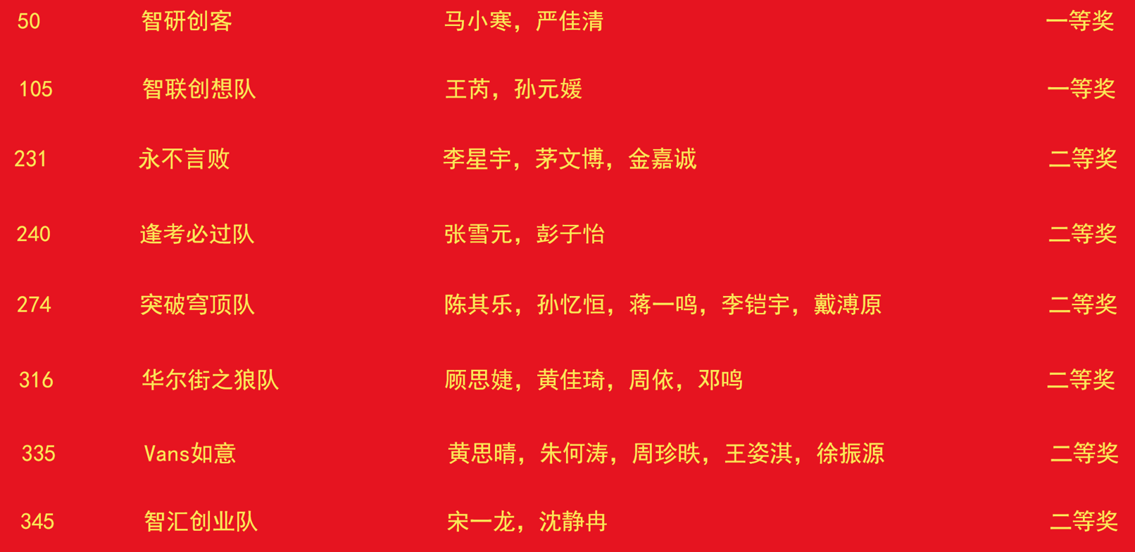 参赛团队获奖名单公示: