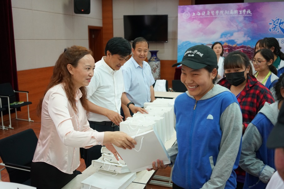 见面会上,江海梅部长对玉树学生说:“我们代表你们的父母和40万玉树人民来看望大家,学校为你们考虑的非常周到、活动也非常丰富,看到你们精神面貌这么好,我非常欣慰”。同时,她希望同学们:勤勉学习,努力成才;遵法守纪,争做楷模;团结友爱,争做典范;心怀感恩,立志向上。希望同学们要永远铭记学校领导和老师们的恩情。要有一股“学不成功、誓不回乡”的气势。用志气鼓舞自己,用志气激励自己,用志气去奋斗。最后,江部长一行为每位学生赠送了学习用品。
