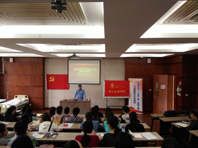 武博士从最近大热的《人民的名义》这部剧开始引入政治生态,进而梳理了党的十八大以来,习近平总书记多次在不同场合发表过的净化政治生态的论述。接下来,武博士从党员干部如何走向贪腐之路和党员们该如何加强自身的廉政建设这两方面来和我们进行了具体的讲解。武博士讲到腐败产生的原因在于党员干部理想信念的不够坚定,思想道德出现滑坡和组织观念的薄弱、组织纪律的涣散等。他提到如何做好一名优秀廉洁的中国共产主义党员,则需要自身不断的学习党的精神,保持思想的不断向上,加强自我相互监督。