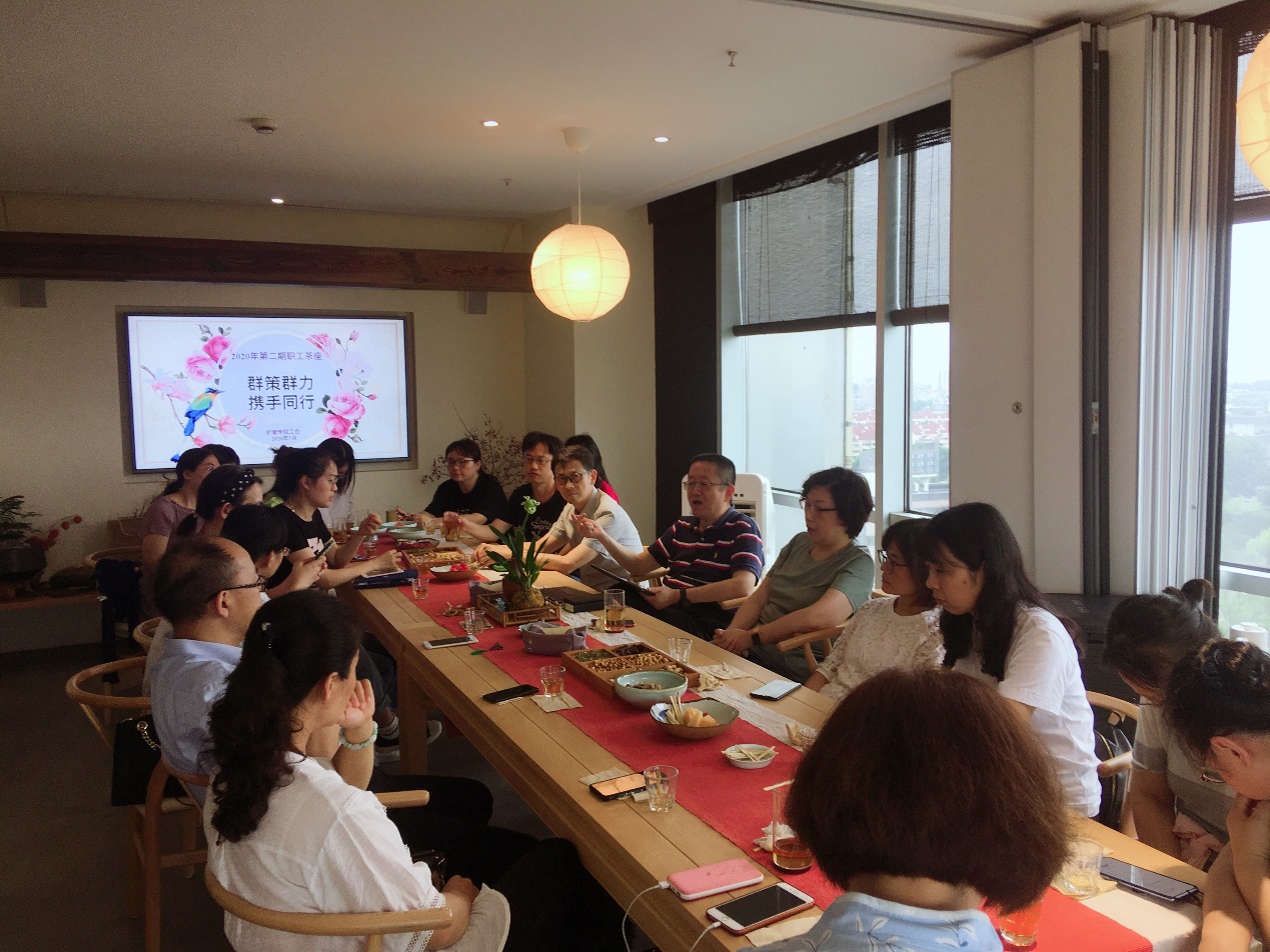 暑假伊始,护管学院工会于7月16日下午在喜予文化举办2020年第二期职工茶座。学院党总支书记汤磊、院长朱爱勇、副院长蒋颖,健管教研室主任和教师代表20余人出席会议,会议由党总支书记汤磊主持。此次茶座主要包括三个议题:第一,全面从严治党上半年工作汇报并听取教师意见和建议;第二,本科评估存在的问题,提出整改意见;第三,健管专业的发展结合本科评估谈诉求想法及除此以外的其他问题。