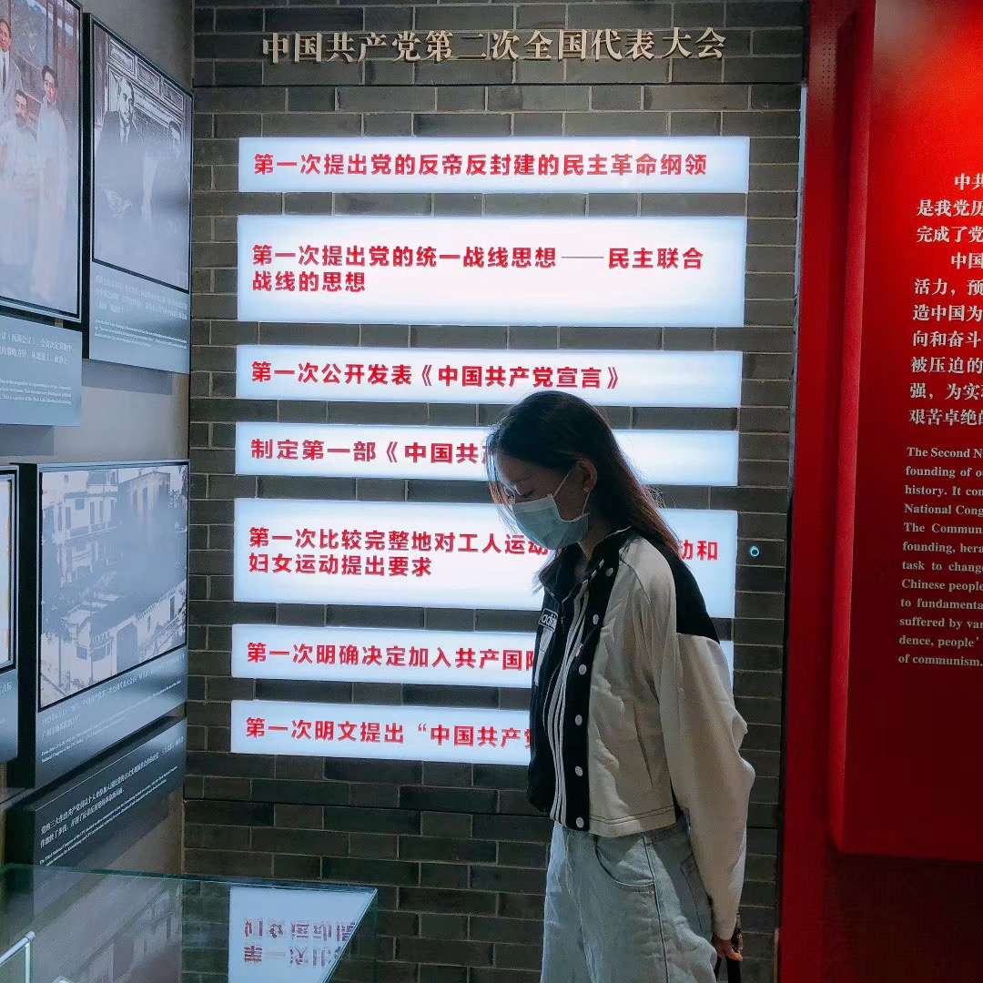 预备党员熊佳琼参观了中共四大纪念馆,馆内分为三个展厅,分别是“时局与形势”、“筹备与召开”、“发展与高潮”。通过一些照片、文字、绘画、3D 等技术手段,共产党创建的峥嵘历程栩栩如生地重现在面前,让我们充分的了解当年的历史。