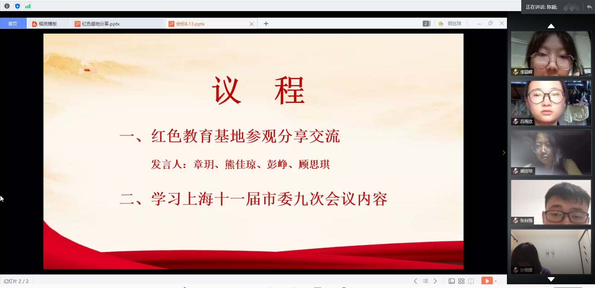 为贯彻落实习近平总书记重要讲话精神,进一步增强学生党员对党史、新中国史、改革开放史和社会主义发展史的认识,提高广大党员同志的政治素养和思想理论水平,2020年8月13日晚上8点,护管学院学生第一党支部通过腾讯会议开展了“学四史、守初心、担使命”组织生活会,分享交流了红色基地的参观感悟。