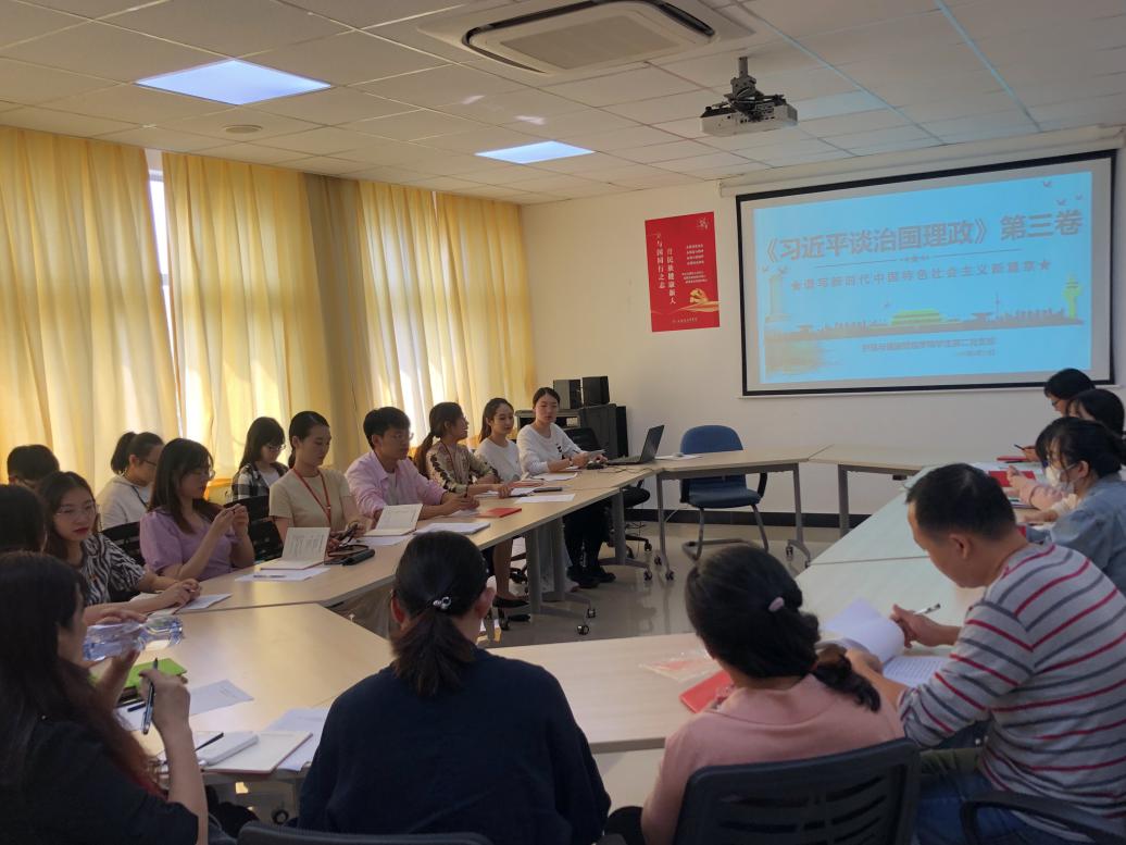9月24日下午13:00,诸侯快讯ok1122官网学生第二党支部在6号楼303开展了“学习《习近平谈治国理政》第三卷”主题党日活动。支部教师党员与在校学生党员共22人参与了此次学习。教师第二党支部书记张美琴老师、学生第一党支部书记陈颖老师、党外人士郑国华教授到场进行了观摩,学生第一党支部纪检委员庞海荣老师全程督查了此次党日活动。