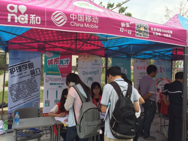 报到处的志愿者帮助新生了解报道流程、负责指路的志愿者帮助不熟学校环境新生了解学校、负责帮助新生搬运行李的志愿者不断往返于报到处和宿舍楼之间,在炎炎烈日下,汗流浃背也无暇顾及。护理学院的老师也在各处维持秩序,对有疑问的新生细心解答,亲切指引。除此之外,此次迎新为了更快的让新生们了解学院环境和各级组织,志愿者们在学校各处安放了学院及学生会的简介。对于想要留念的新生,志愿者们也在主干道上安放了各种小道具供新生拍照。夜色逐渐降临,前来报到的新生逐渐减少,但志愿者们依然精神饱满的等待着,他们目不转睛的盯着每一位新生,希望能捕捉到护理学院新生看到自己学院指示牌时那惊喜和安心的目光。