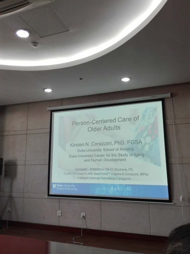 会议纪要:Dr Kirsten Nicol Corazzini就对老年人的人文关怀护理做了一场生动的沙龙讲座,Kirsten教授指出对病人的关怀护理是一种人性和情感的体现,是一种专业性关怀,她认为关怀护理就是护士通过认识病人的独特性,运用各种护理行为帮助他们应对,护理关怀是护士应用自己的专业和技能帮助病人恢复或保持健康的一种过程。同时给我详细讲解了,作为一名照顾老年人群的护士,在每一个照护行为中都要渗透着对老人的尊重,这是人文关怀的最基本内涵。