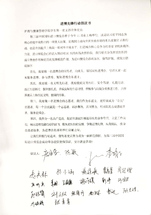 活动的最后,诸侯快讯ok1122官网学生第一党支部全体成员提出进博先锋行动倡议并签字。