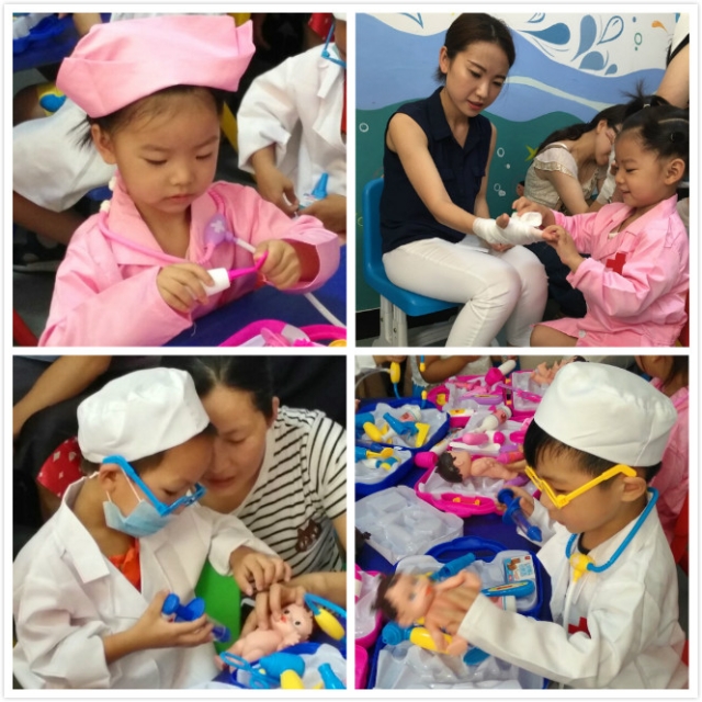 为了活动顺利开展,同学们精心组织策划,准备了逼真的教具和儿童医护人员服装,让小朋友扮演“小医生”和“小护士”,模拟医护人员看病场景,使孩子们在角色扮演中消除对医生护士的抵触情绪,让孩子们了解到医生和护士职业的魅力所在。活动设计了内容丰富的健康趣味小课堂,寓教于乐,教授小朋友学习包扎、正确洗手、刷牙的步骤,让孩子们了解生活中的健康常识和急救知识,学会保护自己,健康成长。同时本次活动还对参与小朋友对医护人员态度等问题展开调查,包括是否愿意成为一名医生或护士,是否害怕就医,了解现在儿童对医护人员的期望和建议,希望能够在孩子们心中播下一颗“白衣天使”的种子,希望他们未来也能成为一名救死扶伤的“白衣战士”!