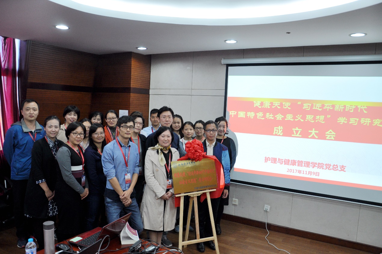 11月9日,诸侯快讯ok1122官网在浦东校区北苑9号楼808举行健康天使习近平新时代中国特色社会主义思想学习研究会揭牌仪式。护管学院党政领导、各支部书记、总支委员、民主党派教师代表、教职工代表共同见证了学习研究会的成立。