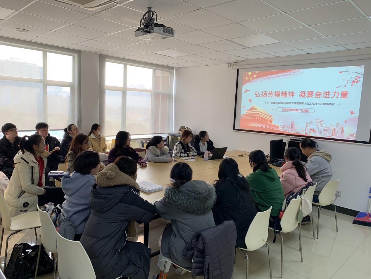 预备党员朱祎雯表示,今天的主题党日讲了劳模精神,其中杨丽芳的故事令我感受颇深。她在第一时间报名援鄂,有一句话“有一种责任叫党员,有一种奉献叫医者”,在这次疫情“防疫战”中,有无数个像杨丽芳一样的优秀党员,这些党员前辈都值得我们学习。作为一名预备党员,同样也作为一名未来的医者,责任和奉献是我们的必修课,我们要充分发挥先锋模范作用,立足岗位,始终冲锋在前。我们要用实际行动,通过不断地努力和奋斗,真正做到求真务实、脚踏实地,弘扬并传承劳模精神。