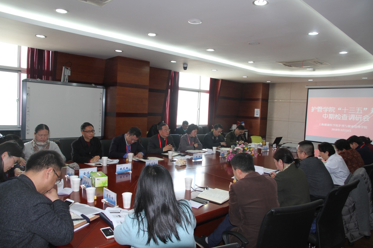 首先,护管学院朱爱勇院长从总体感受、工作思路、开展工作、下一步工作重点、需请示汇报问题、意见建议等六个方面介绍了学院工作及发展情况。接着,发展规划处、人事处、信管中心、教务处分别对标“十三五”规划提出了建议和意见。