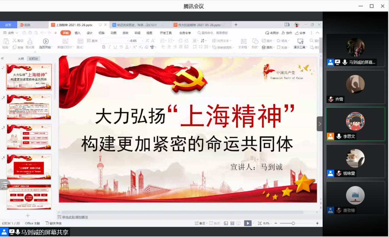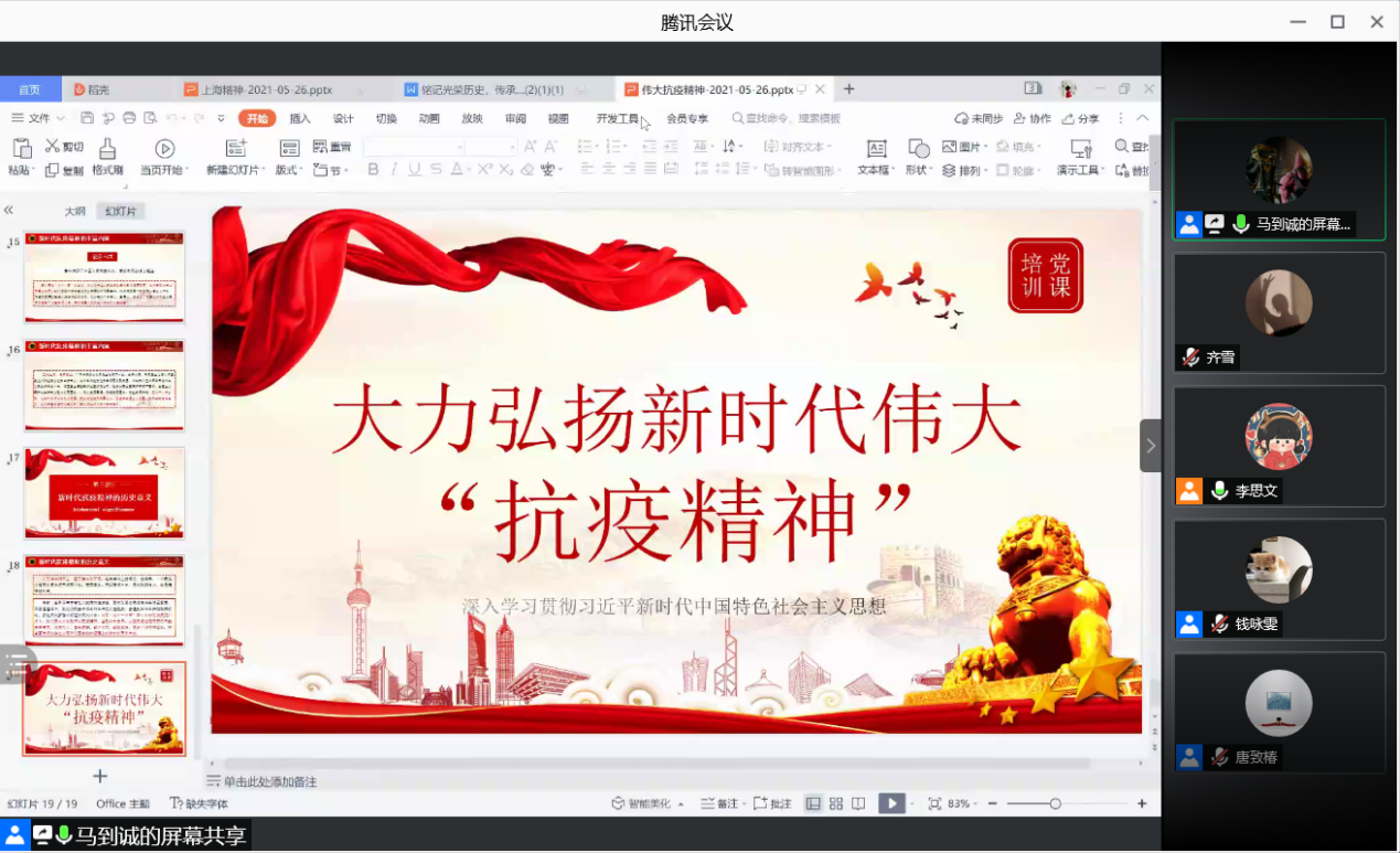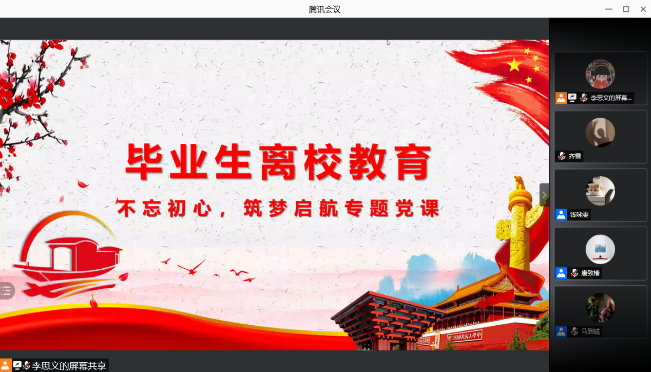 2021年6月26日下午18:00,诸侯快讯ok1122官网学生党支部在线上腾讯会议平台,开展了毕业生离校教育——不忘初心,逐梦启航专题党课。毕业生党员、预备党员、发展对象、入党积极分子均参加。今年是中国共产党成立一百周年。党的百年历程的伟大实践,引领中国人民实现民族独立和人民解放,实现国家富强和人民幸福,迎来了从站起来、富起来到强起来的伟大飞跃。习近平总书记指出:“在一百年的非凡奋斗历程中,一代又一代中国共产党人顽强拼搏、不懈奋斗,涌现了一大批视死如归的革命烈士、一大批顽强奋斗的英雄人物、一大批忘我奉献的先进模范,形成了一系列伟大精神,构筑起了中国共产党人的精神谱系,为我们立党兴党强党提供了丰厚滋养。”正是这些伟大精神,在革命、建设和改革的各个历史时期激励着一代又一代人昂扬奋进。