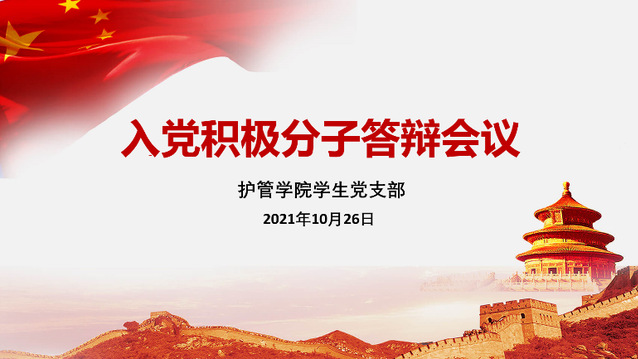 2021年10月26日18:00-20:00,由护管学院学生党支部组织的入党积极分子答辩会议在腾讯会议上举行,参与本次会议的入党积极分子共68位,分为3组依次进行了答辩。第一组由陈颖老师和组织部部员杨思仪负责,第二组由吴芳芳老师和组织部部员赵婉婷负责,第三组由组织部部长李思文和部员季文婷负责。