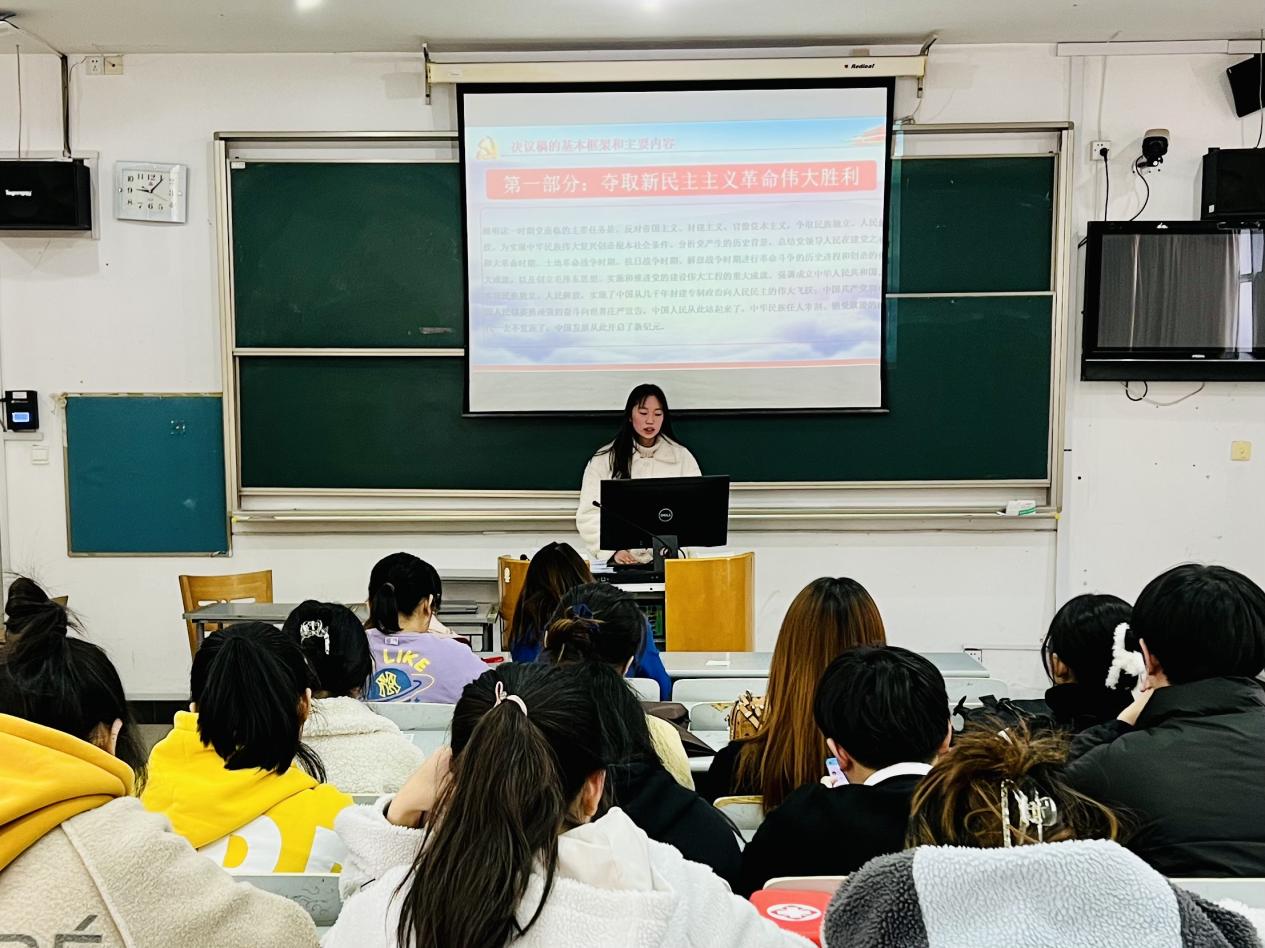 然后,领学人王燕雯带领大家学习了决议稿的基本框架和主要内容。共七个部分:第一部分是夺取新民主主义革命伟大胜利,阐明了这一时期党面临的主要任务为实现中华民族伟大复兴创造了根本社会条件,中国发展从此开启了新纪元;第二部分是完成社会主义革命和推进社会主义建设,强调这一时期党领导人民创造的伟大成就,实现了一穷二白、人口众多的东方大国大步迈进社会主义社会的伟大飞跃;第三部分是进行改革开放和社会主义现代化建设,阐明这一时期党面临的主要任务是,继续探索中国建设社会主义的正确道路,解放和发展社会生产力,使人民摆脱贫困、尽快富裕起来,为实现中华民族伟大复兴提供充满新的活力的体制保证和快速发展的物质条件;第四部分是开创中国特色社会主义新时代,中华民族迎来了从站起来、富起来到强起来的伟大飞跃;第五部分是中国共产党百年奋斗的历史意义,立足中华大地,放眼人类未来;第六部分是中国共产党百年奋斗的历史经验,概括了具有根本性和长远指导意义的十条历史经验;第七部分是新时代的中国共产党,为实现第二个百年奋斗目标、实现中华民族伟大复兴的中国梦而不懈奋斗。