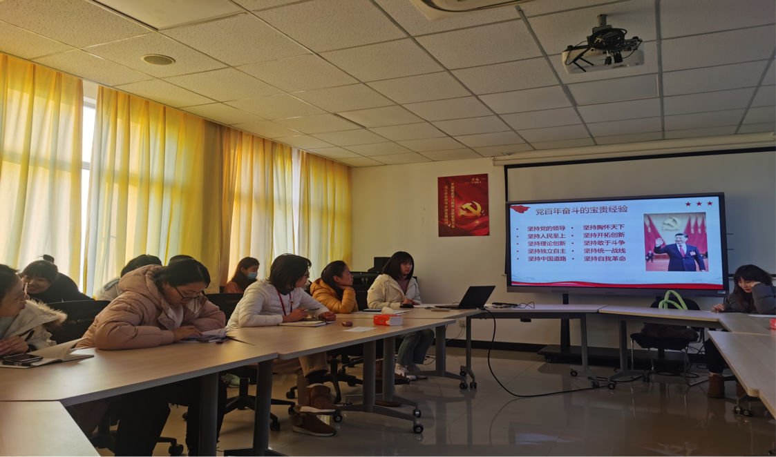 首先,刘心怡同学带领全体党员回顾了一百年来党的辉煌奋斗历程,党领导人民浴血奋战、百折不挠, 创造了新民主主义革命的伟大成就;自力更生、发愤图强,创造了社会主义革命和建设的伟大成就;解放思想、锐意进取,创造了改革开放和社会主义现代化建设的伟大成就;自信自强、守正创新,创造了新时代中国特色社会主义的伟大成就,党和人民百年奋斗,书写了中华民族几千年历史上最恢宏的史诗。其次,刘心怡同学带领大家重点学习了党百年奋斗的十条经验:坚持党的领导、坚持人民至上、坚持理论创新、坚持独立自主、坚持中国道路、坚持胸怀天下、坚持开拓创新、坚持敢于斗争、坚持统一战线、坚持自我革命。