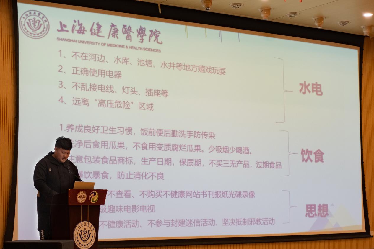 寒假将至,安全仍需严加保障,来自20级公共管理事业班的安全委员沈允普同学为大家科普了安全相关知识,通过精彩的演讲以及小视频播放,让两院同学对于假期和临近春节的各项安全知识有了更多的了解,做好个人安全防范。