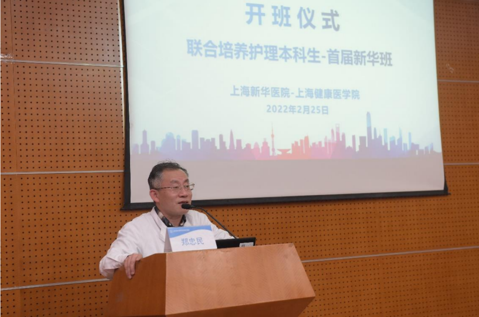 新华医院郑忠民副院长用“一家人”形容医院和学校的历史渊源和长期合作关系,在致辞中饱含着对护理学科发展的赞许、对联合培养项目的信心,以及对学生们的殷切期望,他表示院方将对学习环境、生活条件等各方面给予大力支持,希望学生们通过医院、学院与自身的共同努力学有所成,更期待毕业后能加入新华医院这个温暖、有爱的大家庭。