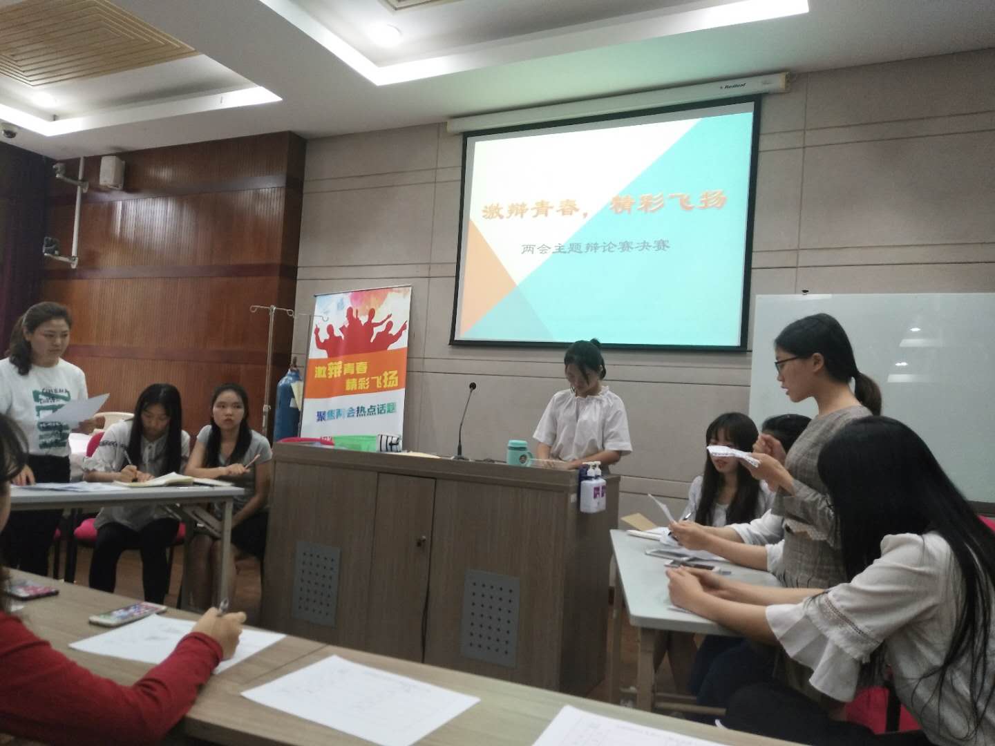 5月25日下午16点30分,诸侯快讯ok1122官网受助学生服务队举办“激辩青春,精彩飞扬”辩论总决赛在九号楼108教室完美落幕。从4月份初赛开始直到决赛,参赛选手们围绕两会热点各己见,团队紧密合作。从“数字货币是否应取代传统货币”到“电子书籍是否应取代纸质书籍”再到“学前教育是否应被纳入义务教育”,辩手们唇枪舌战,激情四射使辩论赛如火如荼地进行。